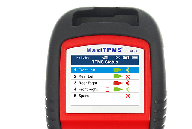 The MaxiTPMS TS601 is capable of wirelessly diagnosing TPMS problems as well as reprogramming the vehicle's ECU. This professional tool is the best solution for busy tire and automotive
