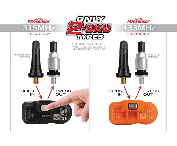 Facing the growing OE sensor SKU numbers, AUTEL help to greatly reduce tire dealers and mechanic shop’s inventory to only 2 SKU types, 315 MHz sensor and 433 MHz sensor, to replace 98% of OE sensors in the market. MX-Sensors are built to perform like O.E sensor, in terms of signal interval, durability & functionality.